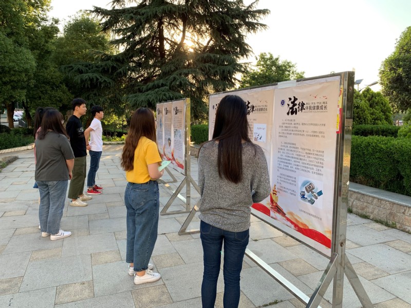 法治宣传教育周期间,商学院制作了普法宣传展板在校园内展出,普及在大学学习生活中经常会遇到的法律常识。如考试、求职、办理信用卡、毕业租房、文明使用网络等方面的法律常识。呼吁同学们尊法学法守法用法,共同增强法律意识,构建和谐校园。