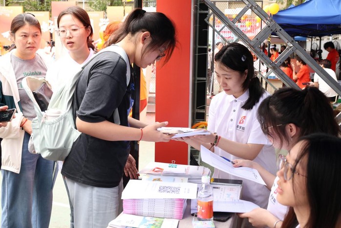 报到现场,学院还设立“资助与奖励咨询台”,向全体新生发放《商学院资助与奖励手册》,使新生一入校就了解大学期间可参加的各级各类活动及奖项,以及各种资助政策,促进学生明确方向、树立目标,也为家庭经济困难新生解决后顾之忧。手册最后印有学院微信公众号二维码,志愿者引导新生们扫码关注,及时了解学院动态和发展。为发挥榜样力量,学院将今年考上专转本的169名毕业生录取信息制作成喜报现场展示,以进一步激励新生增强学习动力,不负珍贵的学习时光。