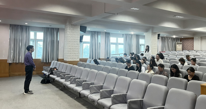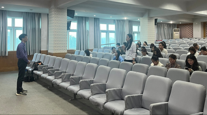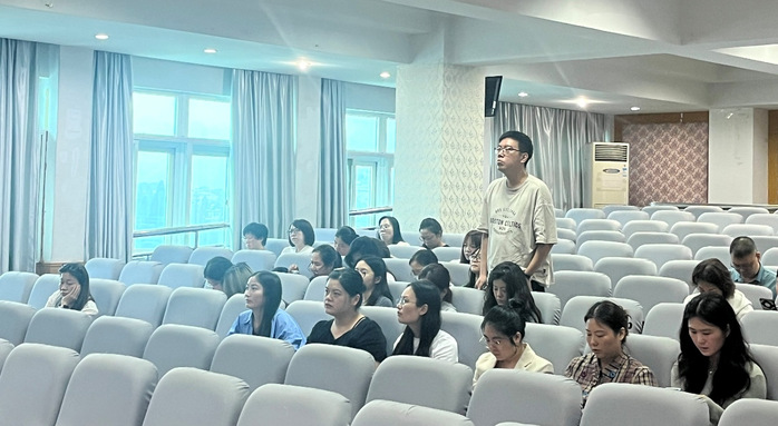 在互动交流环节,商学院青年教师积极提问,现场研讨氛围浓厚。学院青年教师张腾、叶子、孙文婷分别围绕项目申报选题、前期准备等方面,结合自身在文献积累、数据获取方面的困惑,与万兴教授展开交流探讨。万兴教授针对三位教师的问题逐一解惑,为青年教师未来的申报工作提供了新思路。