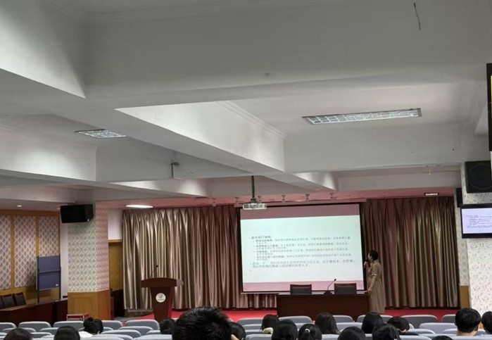 营销管理系:商学院院长助理何冬梅博士担任营销管理系连锁经营与管理专业的导学主讲人,她重点介绍该专业的培养目标、人才培养方案等,鼓励全体新生努力学习,争当先进,以积极姿态投入大学学习。