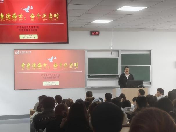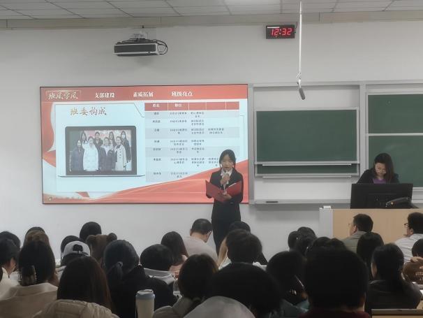 经过初步遴选,最终5个班级进入学院先进班集体评选环节。各班代表依次上台汇报,通过PPT、视频及特色展示,全面而生动地呈现各自班级取得的丰硕成果。有的班级以“党团引领”为核心,展现同学们坚定的理想信念和过硬的政治素养;有的班级“学霸云集”,平均绩点名列前茅,奖学金覆盖率高,在各类学科竞赛、科研项目中屡获佳绩;有的班级凸显“实践创新”特色,积极参与志愿服务、企业实习及创业项目,展现商科学子强烈的社会责任感与卓越的实践能力;有的班级以“多元发展、温馨和谐”的班级文化打动人心,丰富的文体活动、互助友爱的班级氛围,充分体现班集体的向心力与凝聚力。现场展示精彩纷呈,亮点频出,赢得了阵阵掌声。