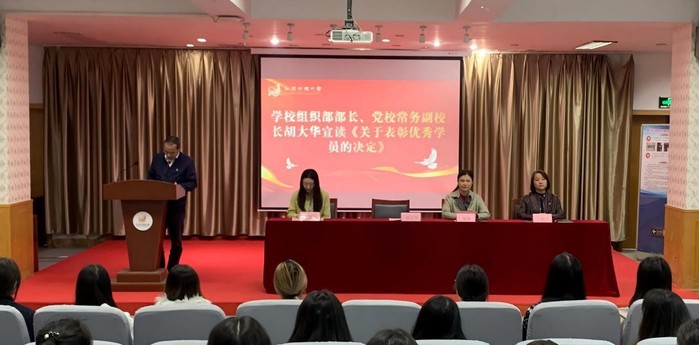 胡大华宣读《关于表彰2025年第一期入党积极分子培训班优秀学员的决定》,对在本次培训中获得表彰的优秀学员表示热烈祝贺。同时,他也对全体学员提出殷切希望,勉励大家在今后的学习与生活中持续勤勉奋进,时刻以高标准严格要求自己,以身作则、勇担使命,努力成为身边同学的榜样。
