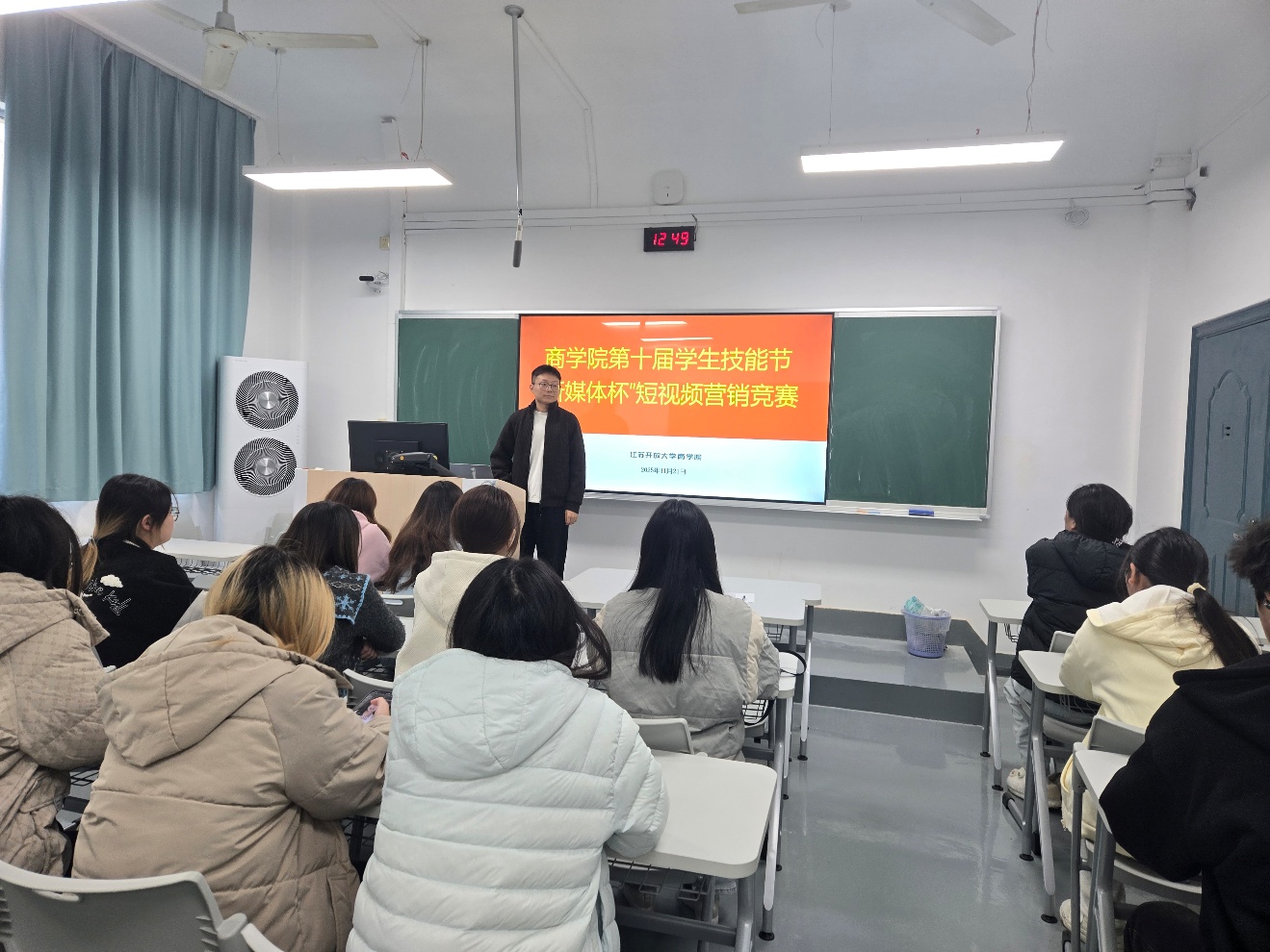 技能节的压轴大戏——“新媒体杯”短视频营销竞赛由国际电子商务系于11月21日在东校区教学楼104室举办。比赛由严春燕和汪礼斌老师主持,商学院近20名选手参赛。参赛选手通过拍摄营销短视频并发布到抖音等平台,展示产品或服务,提升品牌影响力。比赛自11月8日开始,为期13天,最终评选出一等奖1名、二等奖3名、三等奖3名。竞赛充分体现“以赛促学”的竞赛理念,培养具有创新精神和营销才华的人才。