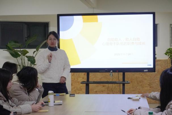 培训中,赵嘉琦明确心理委员开展工作中应遵循的保密原则及其例外情况,特别指出心理危机的干预流程,筑牢校园心理安全防线。此外,她还介绍校园心理咨询服务范围和预约方式,澄清“心理咨询就是聊天”“心理咨询一次就能见效”等常见误区,引导心理委员正确认识心理咨询,鼓励其积极推广各类心理援助渠道。