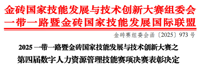 近日,第九届一带一路暨金砖国家技能发展与技术创新大赛第四届数字人力资源管理技能赛项高职组总决赛圆满落幕。我院郑浩宇、伍岩、魏子然三位同学组成的参赛一队,在2025年11月15日的总决赛舞台上沉着应战、奋勇拼搏,最终凭借扎实的专业功底、默契的团队协作和出色的临场表现,从全国众多强队中脱颖而出,成功斩获三等奖,为学校赢得了荣誉!