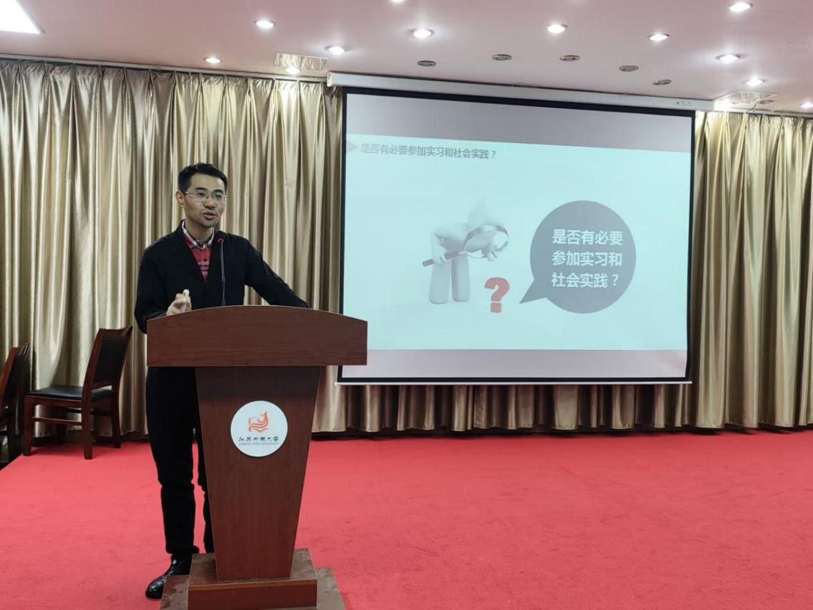 在经济全球化与数字化转型深度融合的当下,财会行业迎来了新的发展机遇与挑战。为帮助财会专业学生破解职业困惑,明确发展路径,2025年12月25日12:30,商学院在东校区图书馆五楼报告厅开展财会专业学生职业发展规划专题讲座。讲座邀请到江苏文投集团财务资产部副主任兼江苏大剧院财务总监、江苏省会计领军人才、高级会计师李新安为同学们开展题为“财会专业学生的职业发展规划:困惑——规划——成功”的授课。讲座由商学院党总支副书记、副院长丁晓华主持,辅导员左慧宇、周阳及2025级大数据与会计专业130余名学生参加。