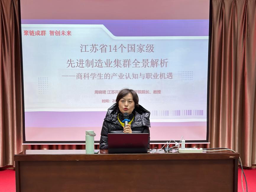 周晓珺对江苏省14个国家级先进制造业集群的发展现状和工作重点逐一进行全面深入的解析,在当前中国经济转型升级的大背景下,江苏省的先进制造业集群正以前所未有的速度崛起,成为推动区域经济高质量发展的重要引擎。从物联网到生物医药,从高端纺织到智能电网装备,江苏的先进制造业集群涵盖了多个前沿领域,展现出强大的产业竞争力和发展潜力。周晓珺指出,这14个国家级先进制造业集群的崛起,尤其为商科学生提供了前所未有的职业机遇。在集群内部,企业间的商业活动频繁,从原材料采购、生产制造到产品销售、售后服务,每一个环节都需要大量的市场营销、供应链管理、电子商务等商科人才。因此,商科学生可充分借助这些平台,积累实践经验,提升职业素养,为未来发展打好基础。