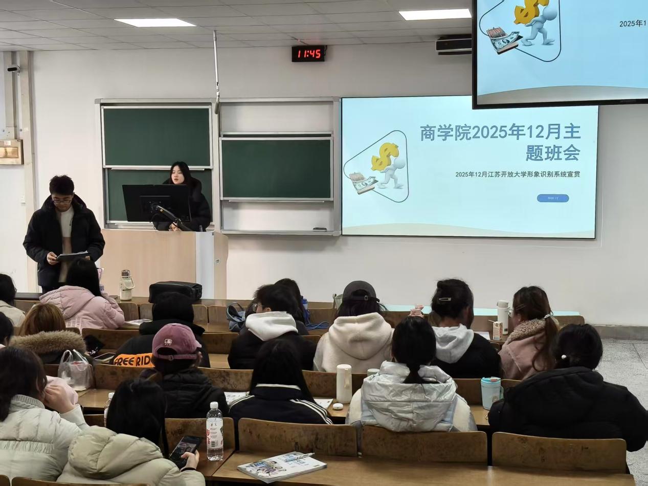 为深入推进校园文化建设,持续筑牢校园安全防线,全面提升学生文明自律素养,商学院于2025年12月15日—25日组织全院所有班级开展“规范形象共识,严守安全底线,共建文明校园”12月主题班会。班会紧扣学校及学院UIS形象识别系统推广、校园安全重点防控与文明校园细节共建三大核心任务,以精准指导、案例警示为抓手,引导全院学生强化规则意识、筑牢安全屏障、践行文明规范,为学院学风建设注入持久动力。