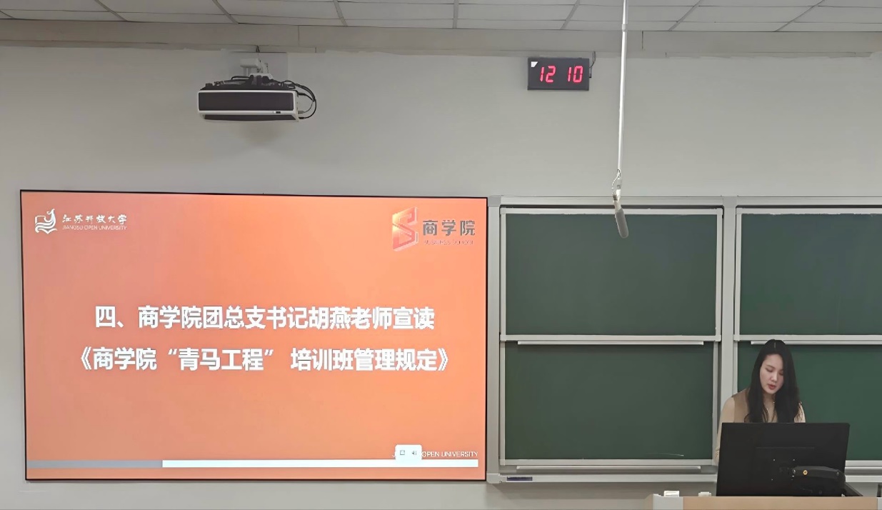 胡燕宣读《商学院“青马工程”培训班管理规定》,明确培养目标、考核标准与纪律要求,为培训有序开展筑牢制度基础。