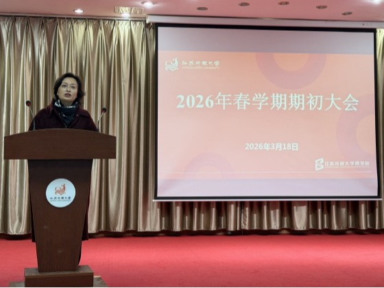 春启新程,共谋发展。2026年3月18日13:00,商学院在古平岗校区图书馆楼5楼报告厅召开2026年春季学期期初教职工大会,全面部署新学期重点工作,擘画学院高质量发展新蓝图。会议由院长周晓珺主持,全体院领导及教职工参会。